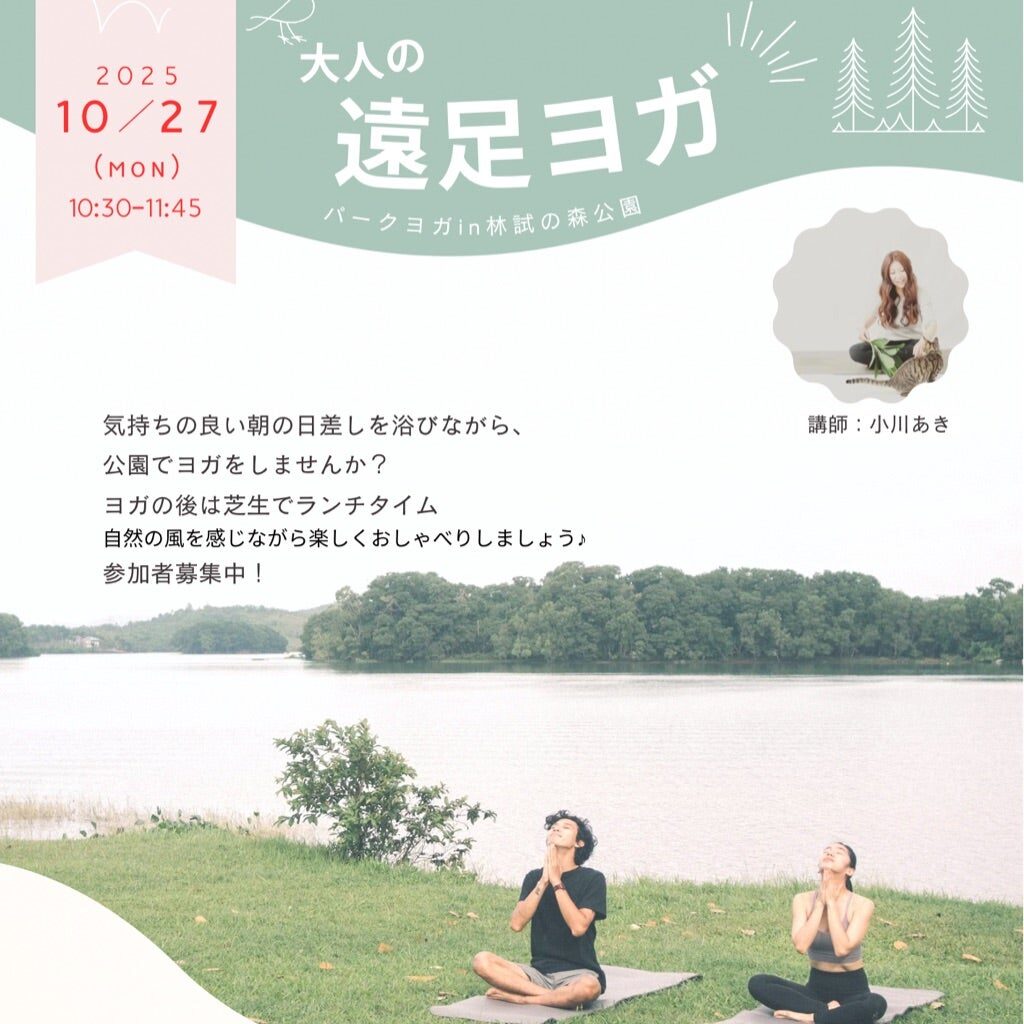 【持ち物】水分補給用の飲み物、ヨガマットまたはレジャーシートで代用OK、虫除けグッズなど