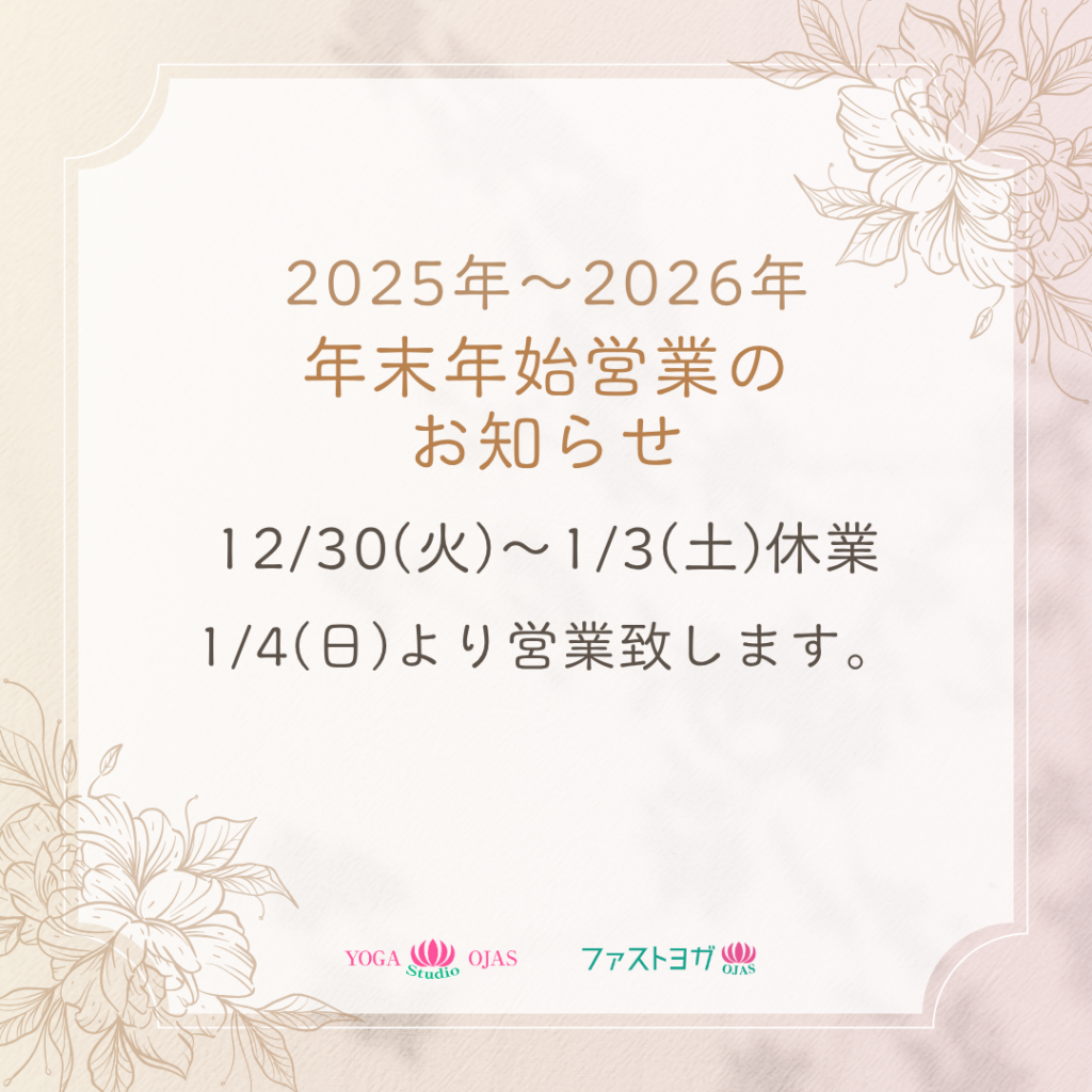 2025年〜2026年の年末年始の休業日は下記の通りとさせていただきます。